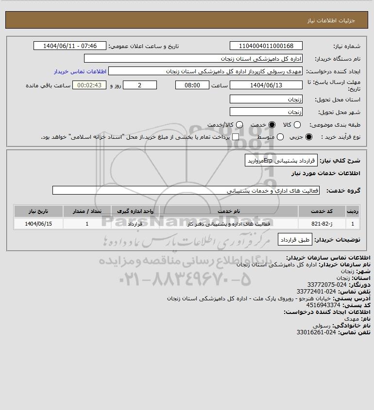 نام دستگاه خریدار:اداره کل دامپزشکی استان زنجان