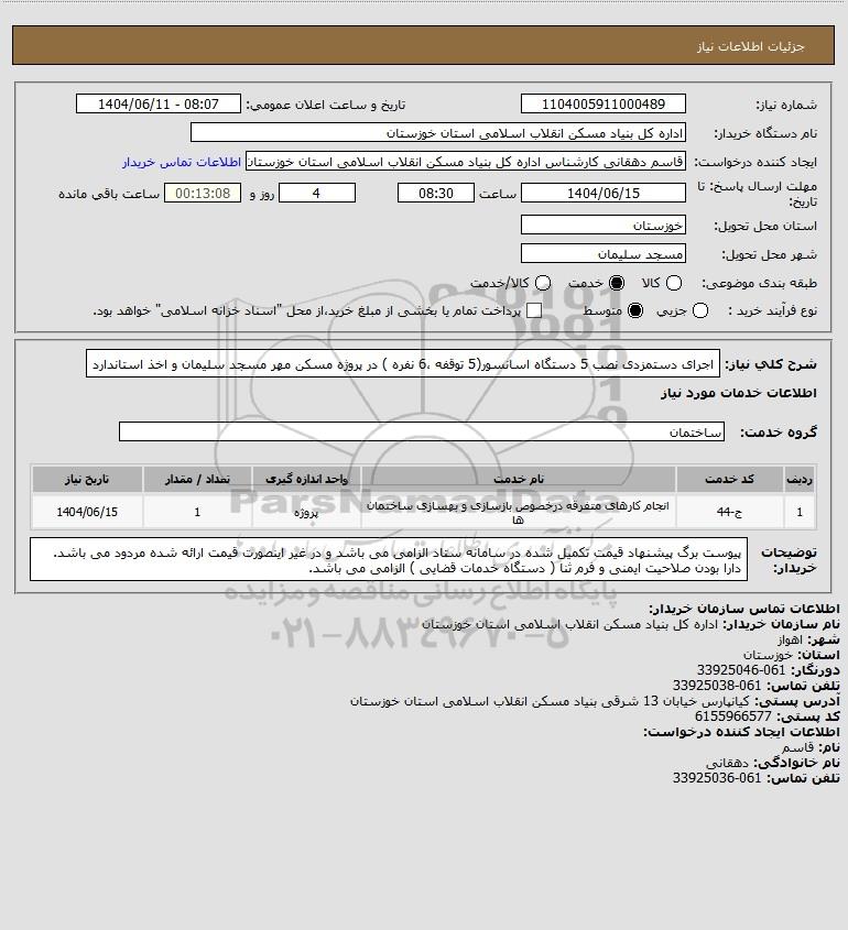 نام دستگاه خریدار:اداره کل بنیاد مسکن انقلاب اسلامی استان خوزستان