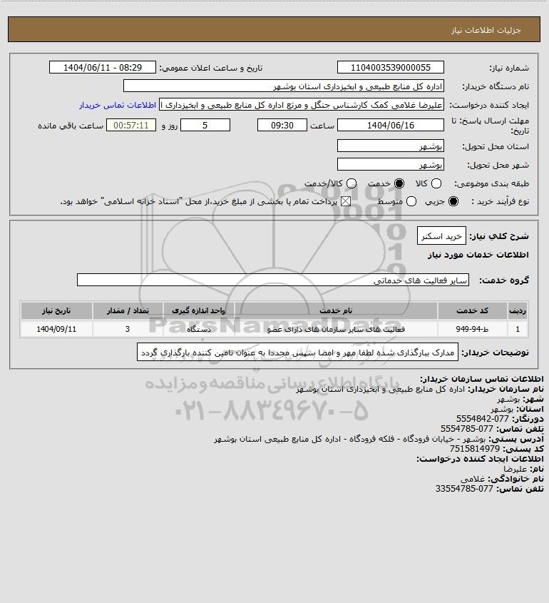 نام دستگاه خریدار:اداره کل منابع طبیعی و ابخیزداری استان بوشهر