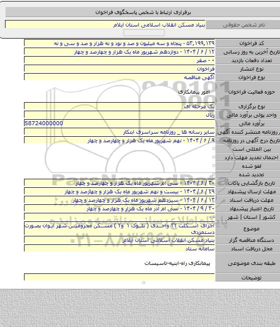 مناقصه اجرای اسکلت ۳۲ واحدی ( بلوک ۱ و۲ ) مسکن محرومین شهر ایوان بصورت دستمزدی از کلیه افراد متخصص و شرکتها واجد شرایط دعوت به عمل میآید در مناقصه با کد خبرگزاری پارس نماد: 9486670 شرکت نمایند.