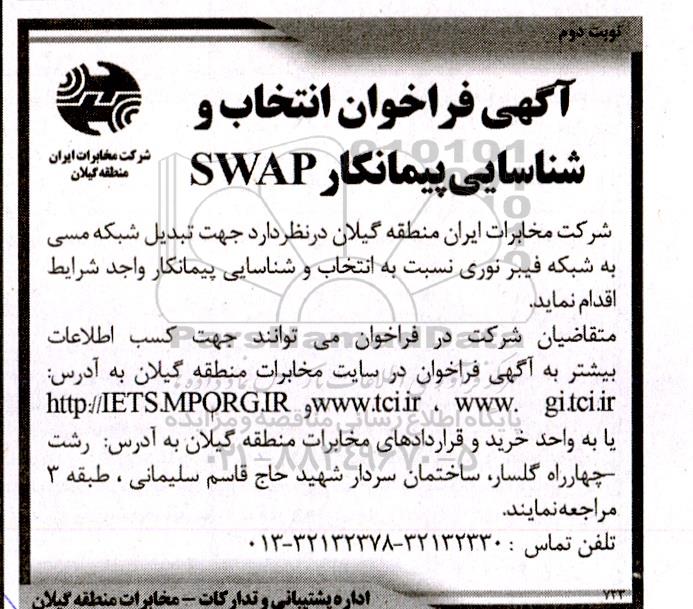 آگهی فراخوان انتخاب و شناسایی پیمانکار SWAP