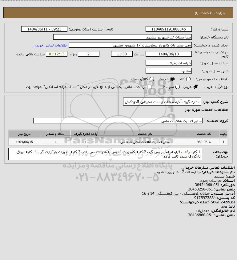 نام دستگاه خریدار:بیمارستان 17 شهریور مشهد