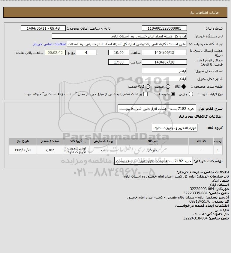 شرح کلی نیاز: خرید 7182 بسته نوشت افزار طبق شرایبط پیوست