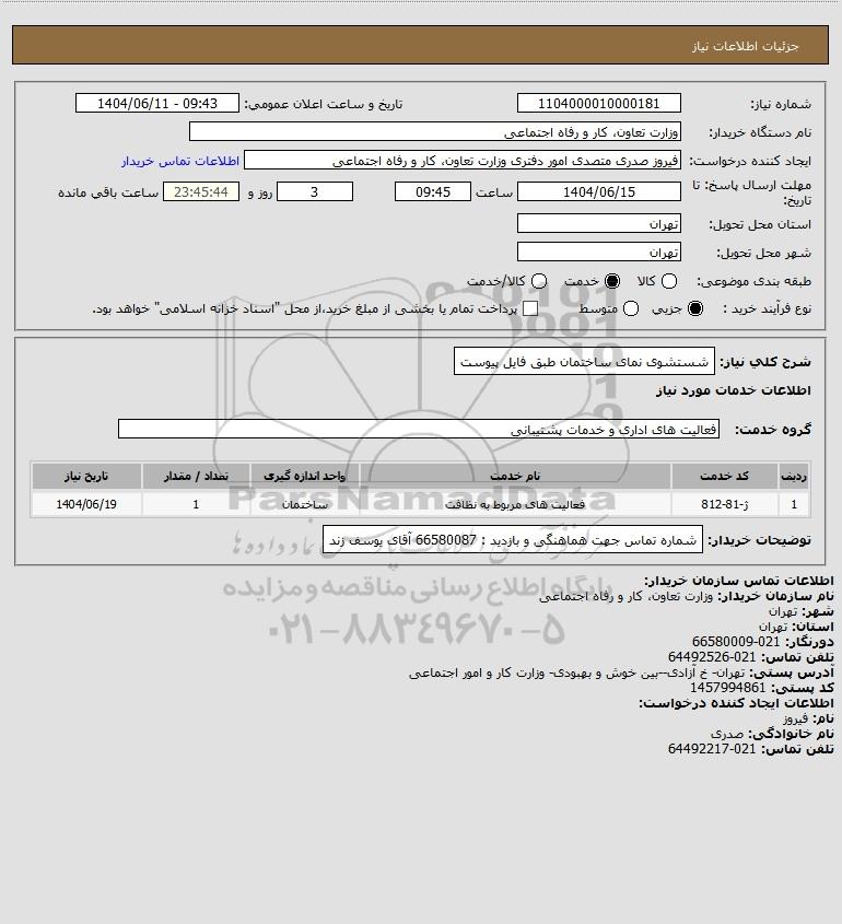 شرح کلی نیاز: شستشوی نمای ساختمان طبق فایل پیوست