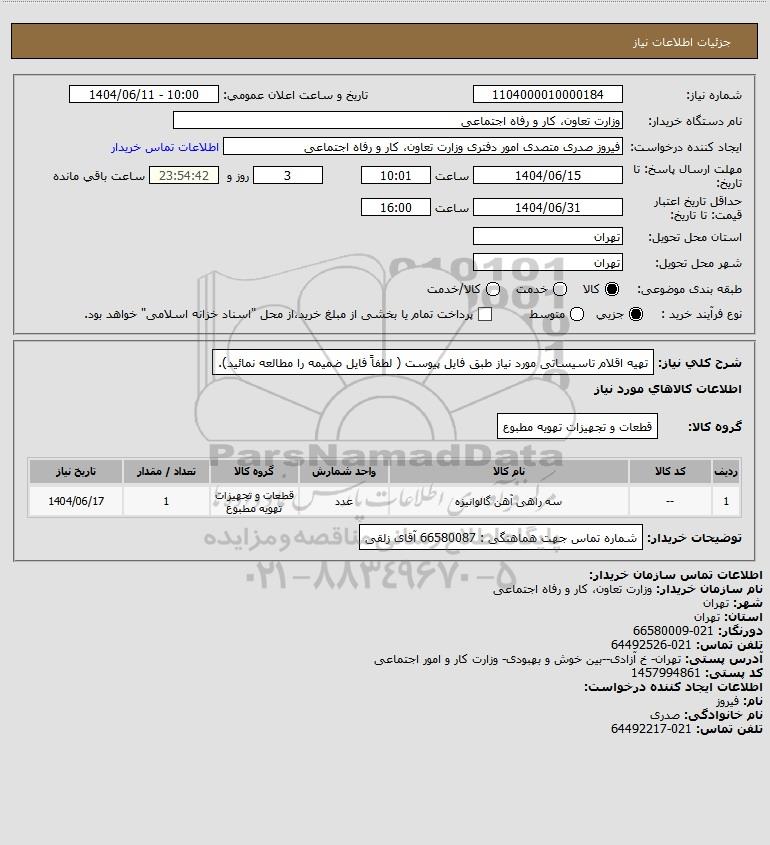 نام دستگاه خریدار:وزارت تعاون، کار و رفاه اجتماعی