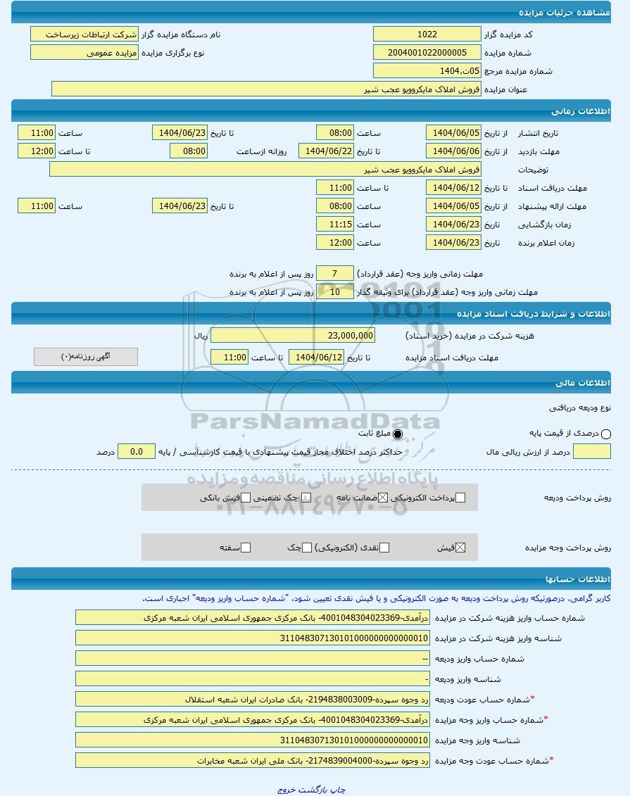 | شماره حساب عودت وجه مزایده | 311048307130101000000000000010 |