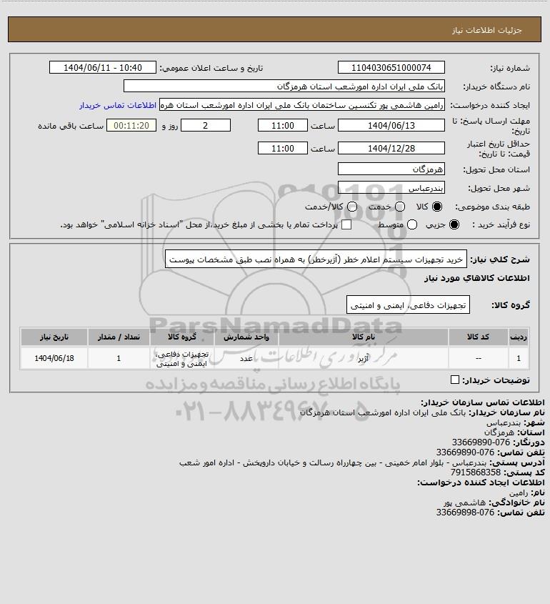 نام سازمان خریدار: بانک ملی ایران اداره امورشعب استان هرمزگان