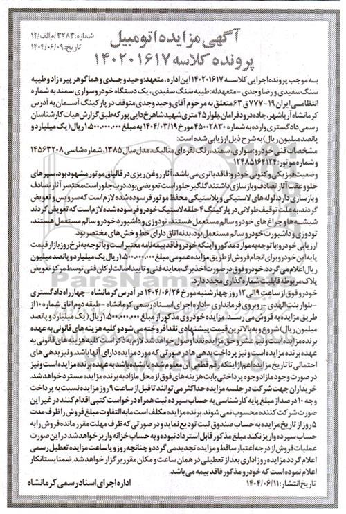 مزایده فروش یکدستگاه سواری سمند مدل 1385 , مزایده فروش یکدستگاه سواری سمند مدل 1385