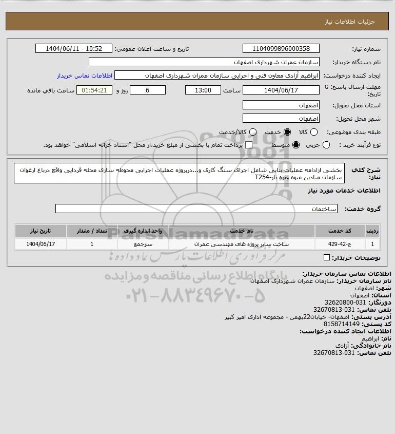 نام دستگاه خریدار:سازمان عمران شهرداری اصفهان