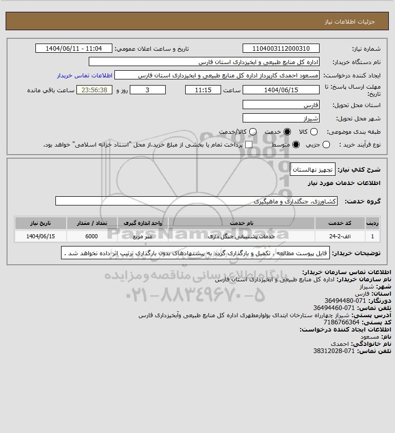 نام دستگاه خریدار:اداره کل منابع طبیعی و ابخیزداری استان فارس