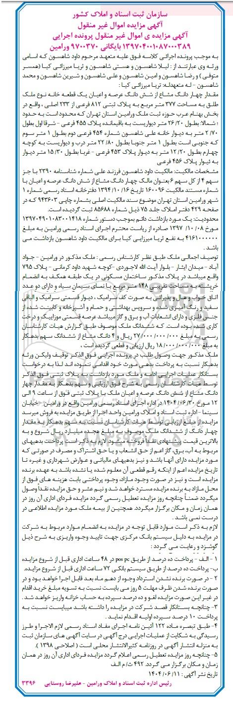 آگهی مزایده اموال غیرمنقول
