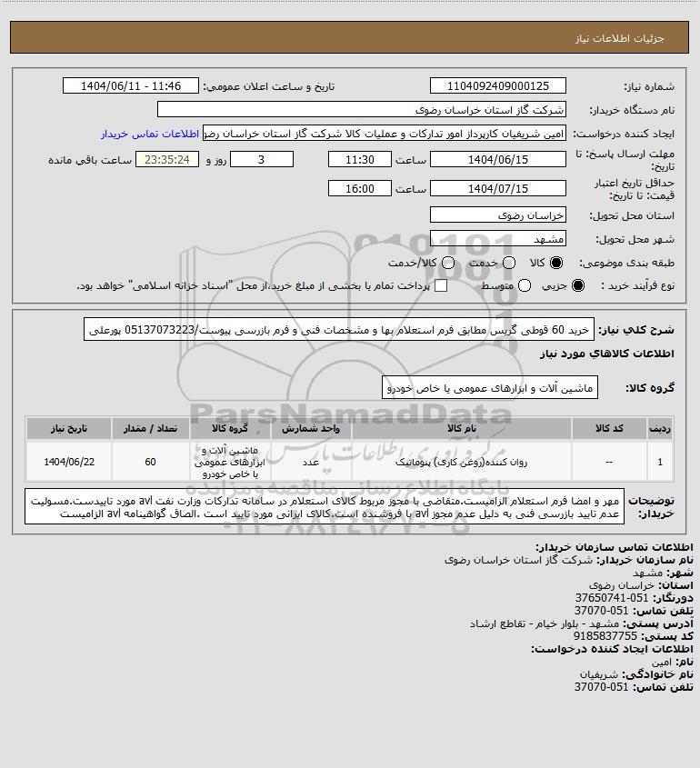 نام دستگاه خریدار:شرکت گاز استان خراسان رضوی