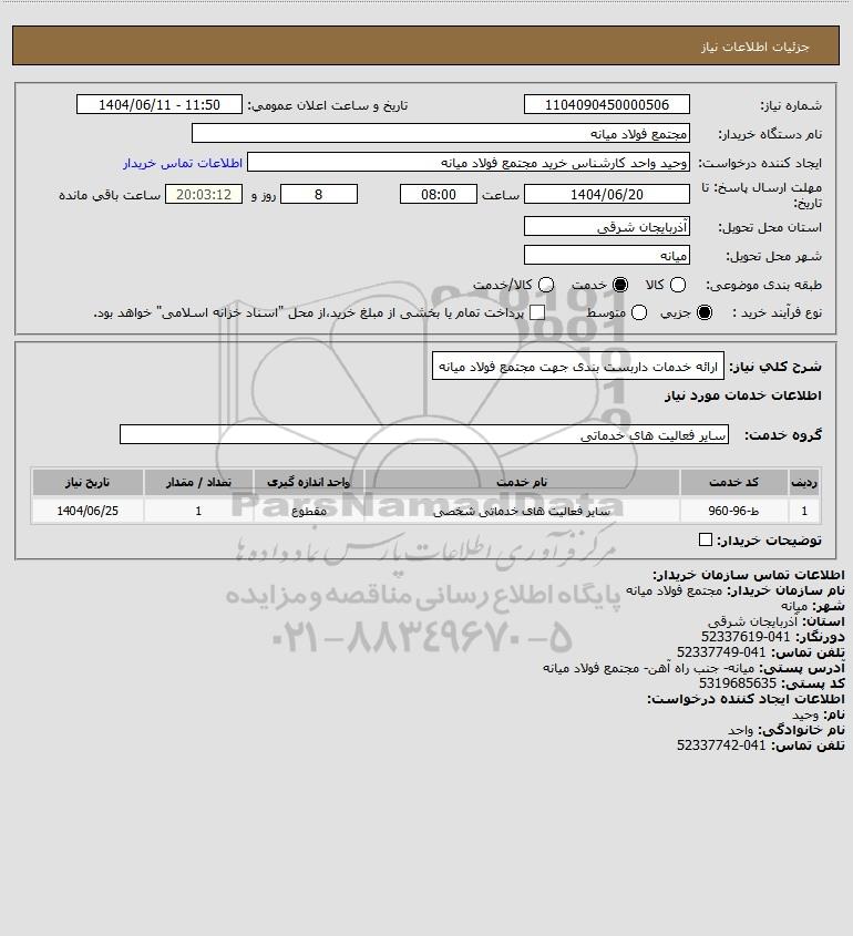 نام دستگاه خریدار:مجتمع فولاد میانه