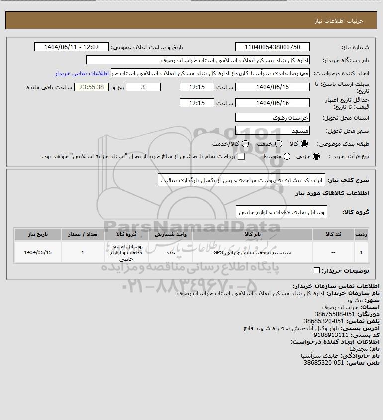 نام دستگاه خریدار:اداره کل بنیاد مسکن انقلاب اسلامی استان خراسان رضوی