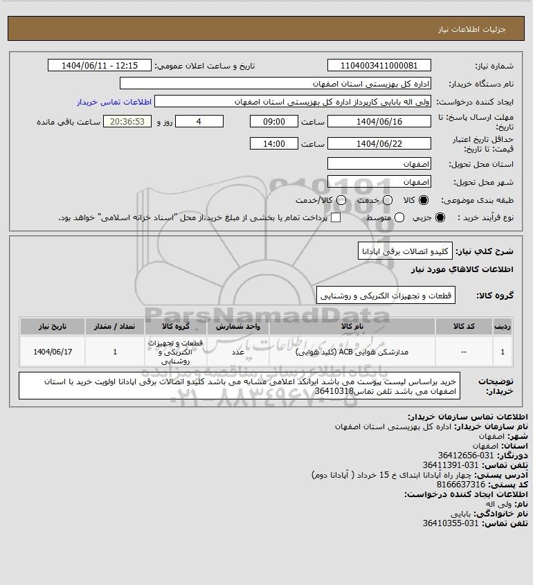 شرح کلی نیاز: کلیدو اتصالات برقی اپادانا
