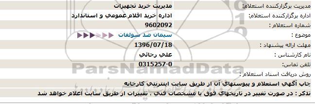 اداره برگزارکننده استعلام:     اداره خرید اقلام عمومی و استاندارد