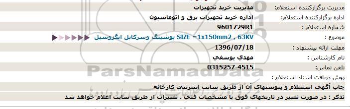 اداره برگزارکننده استعلام: اداره خرید تجهیزات برق و اتوماسیون