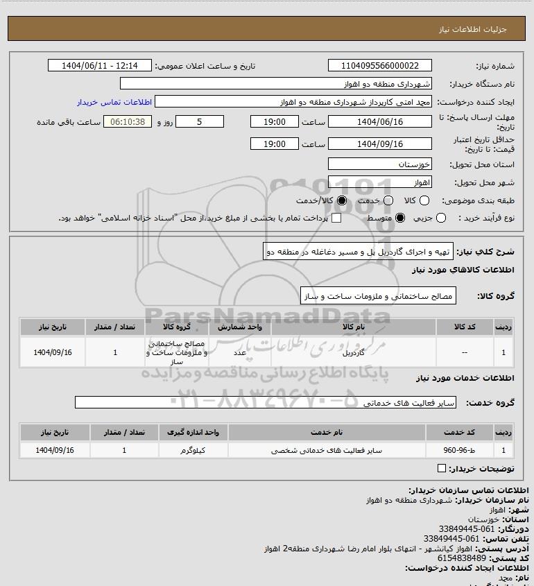 نام دستگاه خریدار:شهرداری منطقه دو اهواز