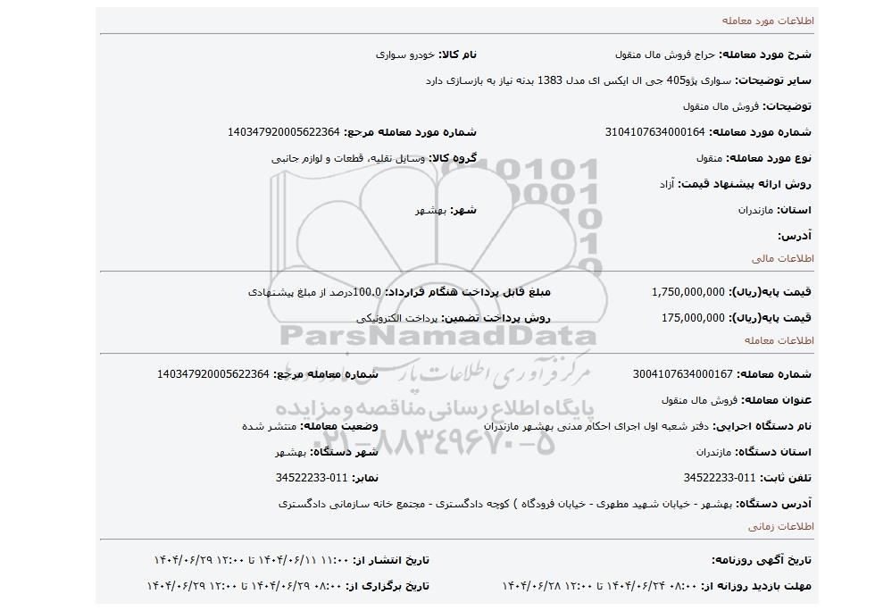 | نوع مورد معامله: منقول | گروه کالا: وسایل نقلیه، قطعات و لوازم جانبی | |