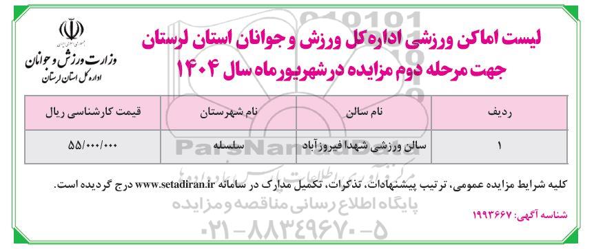 لیست اماکن ورزشی اداره کل ورزش و جوانان استان لرستان جهت مزایده دوم مزایده در شهریور ماه سال 1404