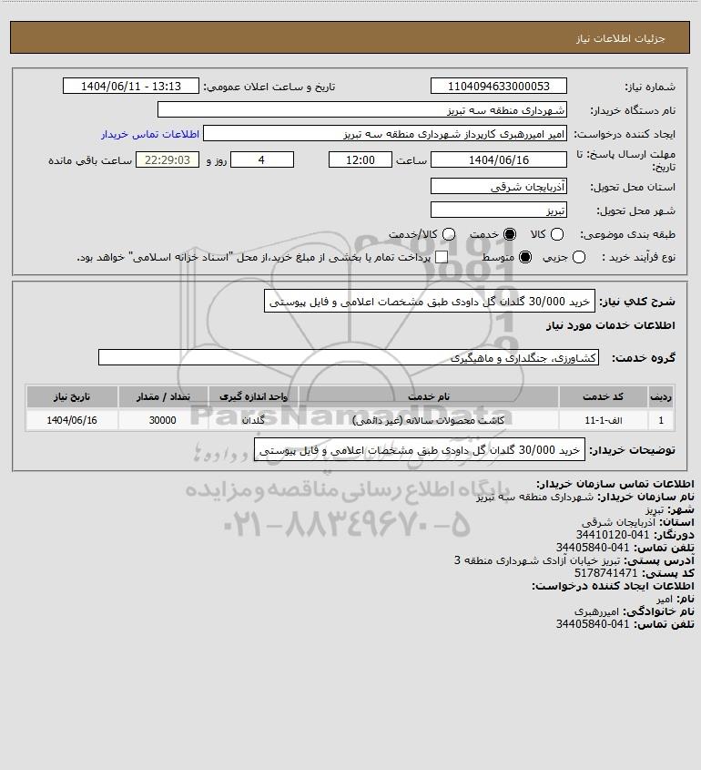 توضیحات خریدار:خرید 30/000 گلدان گل داودی طبق مشخصات اعلامی و فایل پیوستی