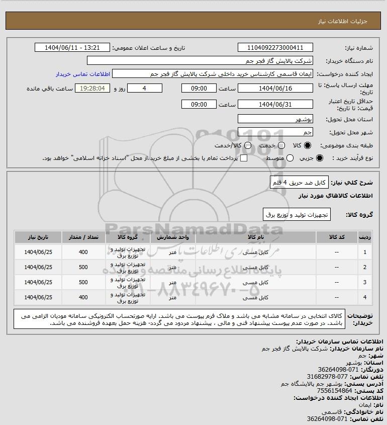 شرح کلی نیاز: کابل ضد حریق 4 قلم