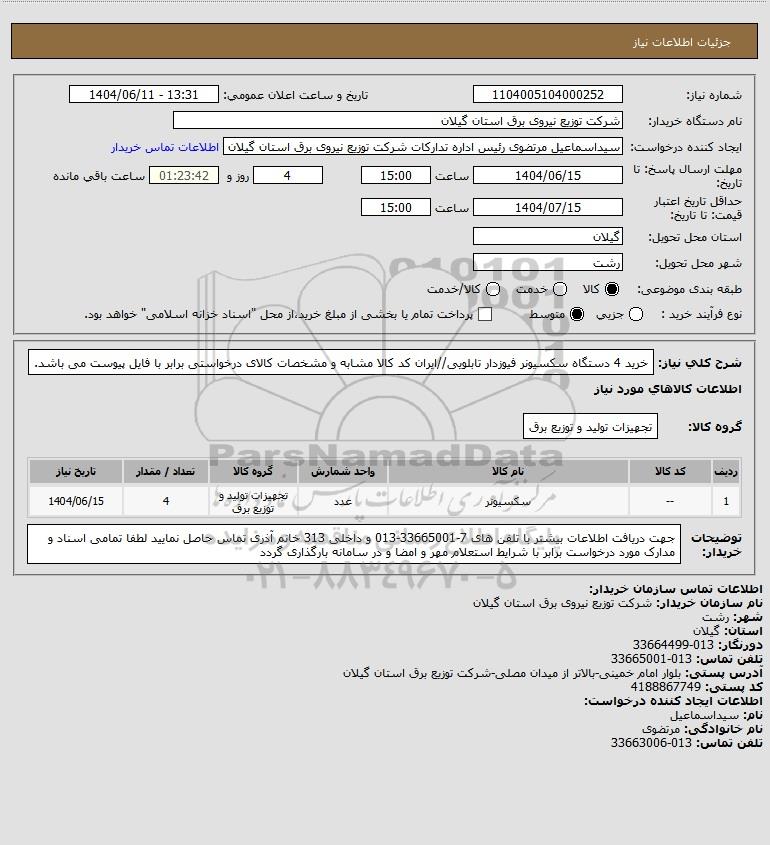 1 -- سکسیونر عدد تجهیزات تولید و توزیع برق 4 1404/06/15