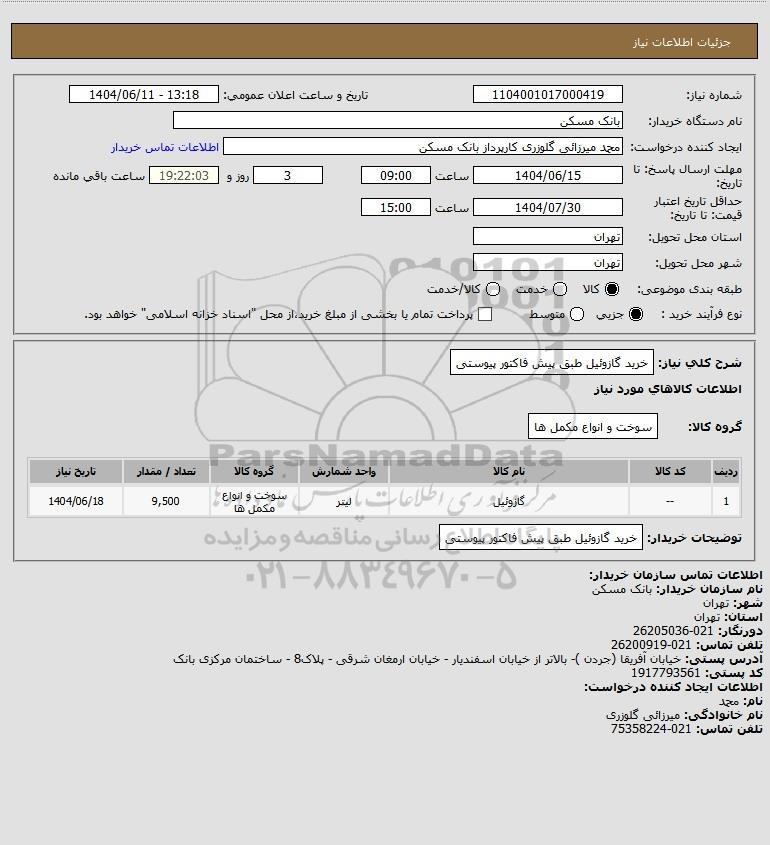 شرح کلی نیاز: خرید گازوئیل طبق پیش فاکتور پیوستی