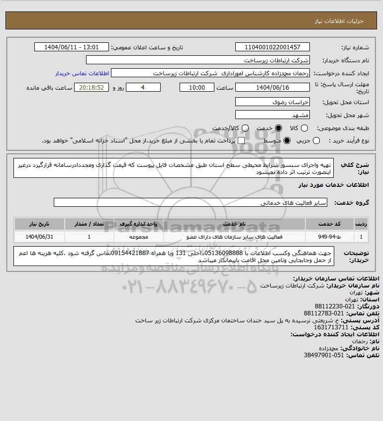 جهت دریافت اطلاعات کامل این آگهی به سامانه ستاد ایران مراجعه فرمایید