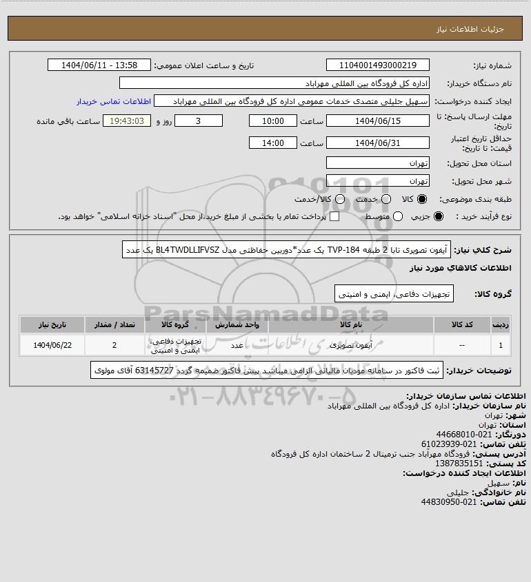 1 -- آیفون تصویری عدد تجهیزات دفاعی، ایمنی و امنیتی 2 1404/06/22