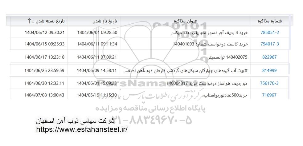 | 814999 | تثبیت آب گروهک های چهارگان سیکلهای گردشی کارخانه ذوب آهن ... | 1404.6.25 |