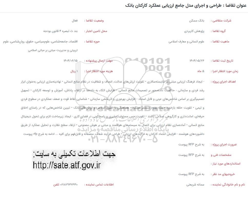 شرکت متقاضی : بانک مسکن