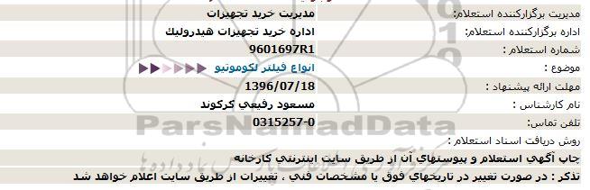 استعلام انواع فیلتر لکوموتیو, استعلام, استعلام انواع فیلتر لکوموتیو