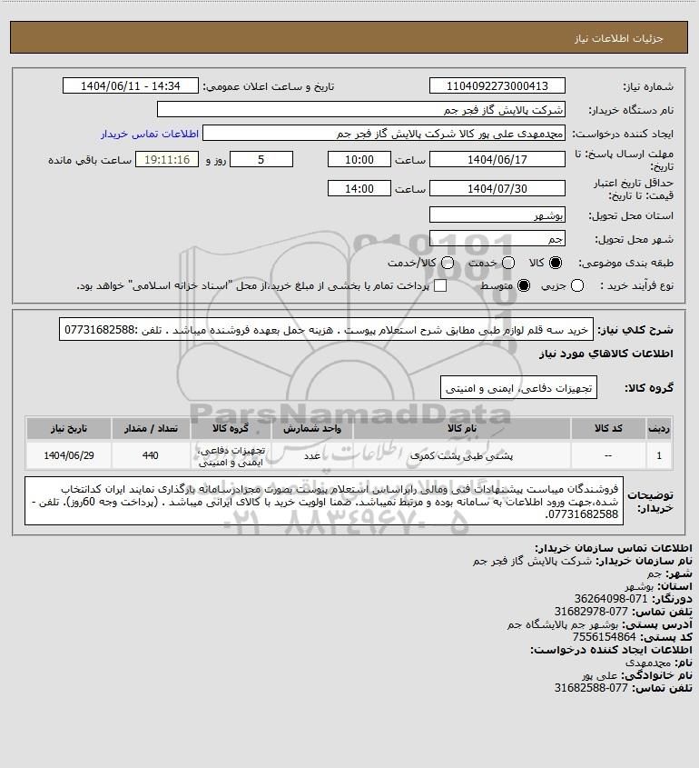 نام سازمان خریدار: شرکت پالایش گاز فجر جم