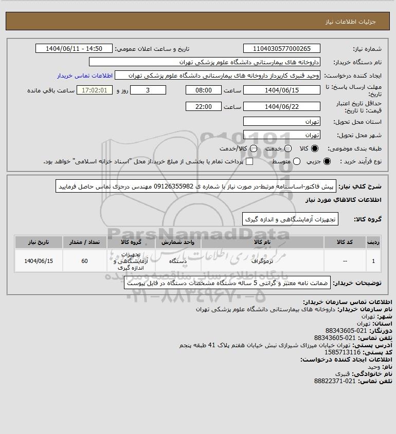 نام دستگاه خریدار:داروخانه های بیمارستانی دانشگاه علوم پزشکی تهران