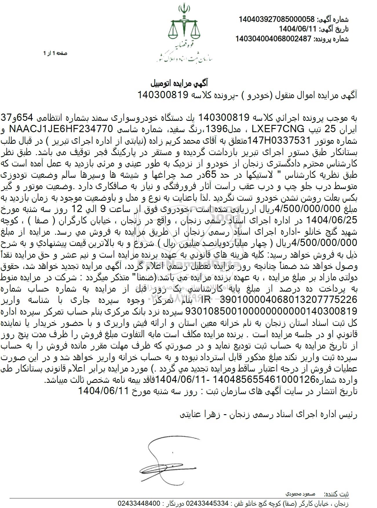 مزایده یک دستگاه خودروی سواری سمند, مزایده یک دستگاه خودروی سواری سمند