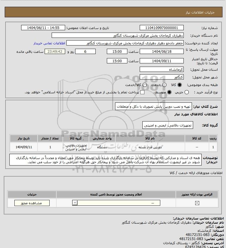 1 -- دوربین مدار بسته دستگاه تجهیزات دفاعی، ایمنی و امنیتی 1 1404/09/11