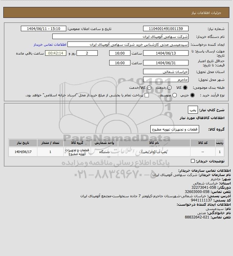 نام دستگاه خریدار:شرکت سهامی آلومینای ایران