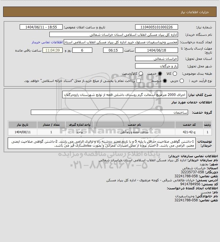 نام دستگاه خریدار:اداره کل بنیاد مسکن انقلاب اسلامی استان خراسان شمالی