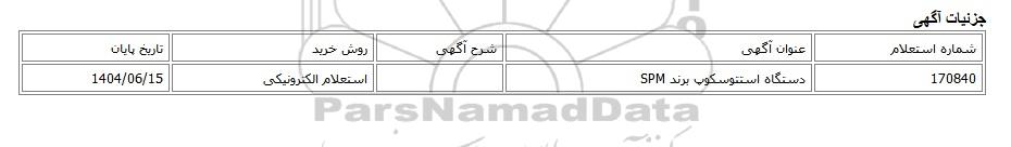 | 170840 | دستگاه استتوسکوپ برند SPM | استعلام الکترونیکی | 1404/06/15 |