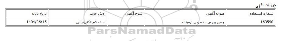 | 163590 | جمپر پیچی مخصوص ترمینال | استعلام الکترونیکی | 1404/06/15 |