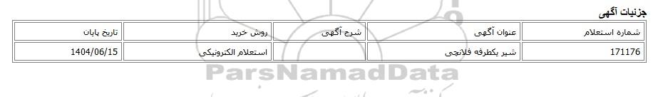 | 171176 | شیر یکطرفه فلانچی | استعلام الکترونیکی | 1404/06/15 |