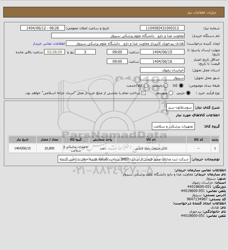 نام دستگاه خریدار:معاونت غذا و دارو دانشگاه علوم پزشکی سبزوار