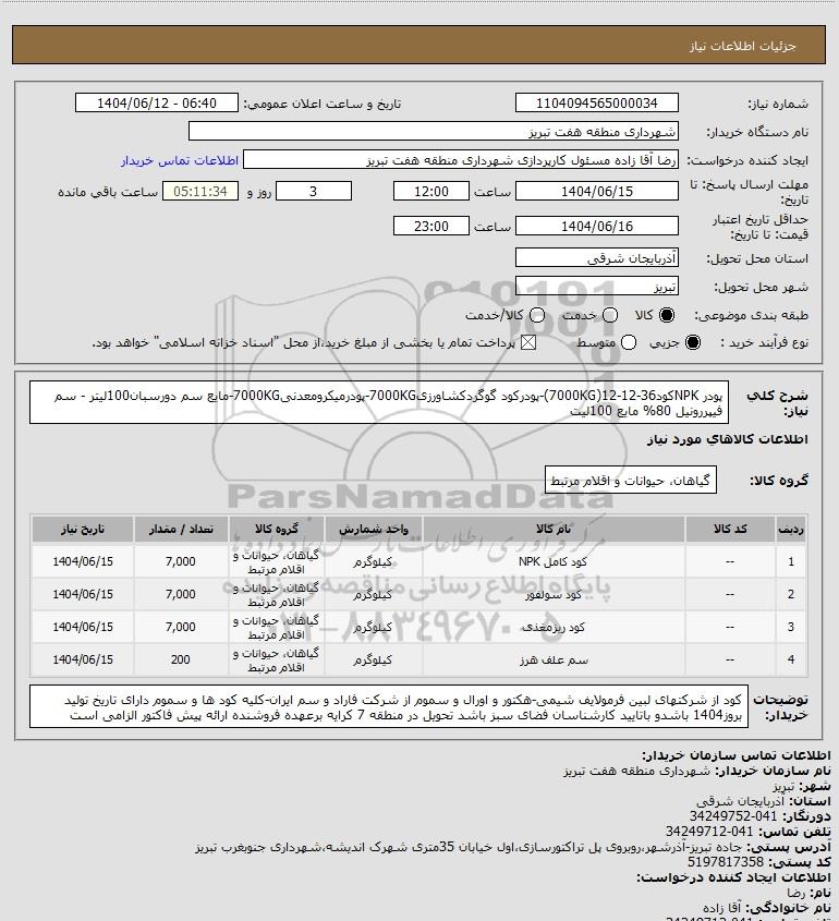 3 -- کود ریزمغذی کیلوگرم گیاهان، حیوانات و اقلام مرتبط 7,000 1404/06/15