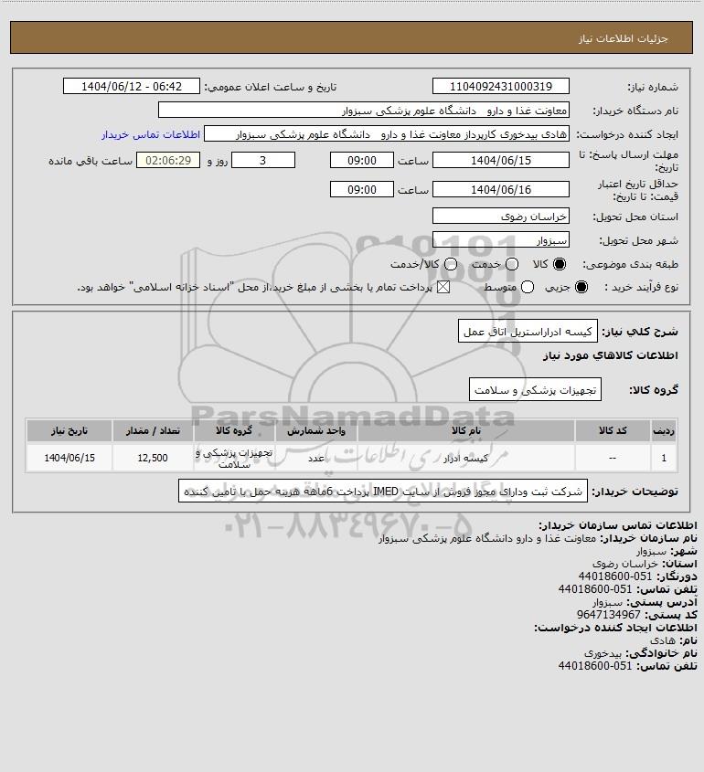 نام دستگاه خریدار:معاونت غذا و دارو دانشگاه علوم پزشکی سبزوار