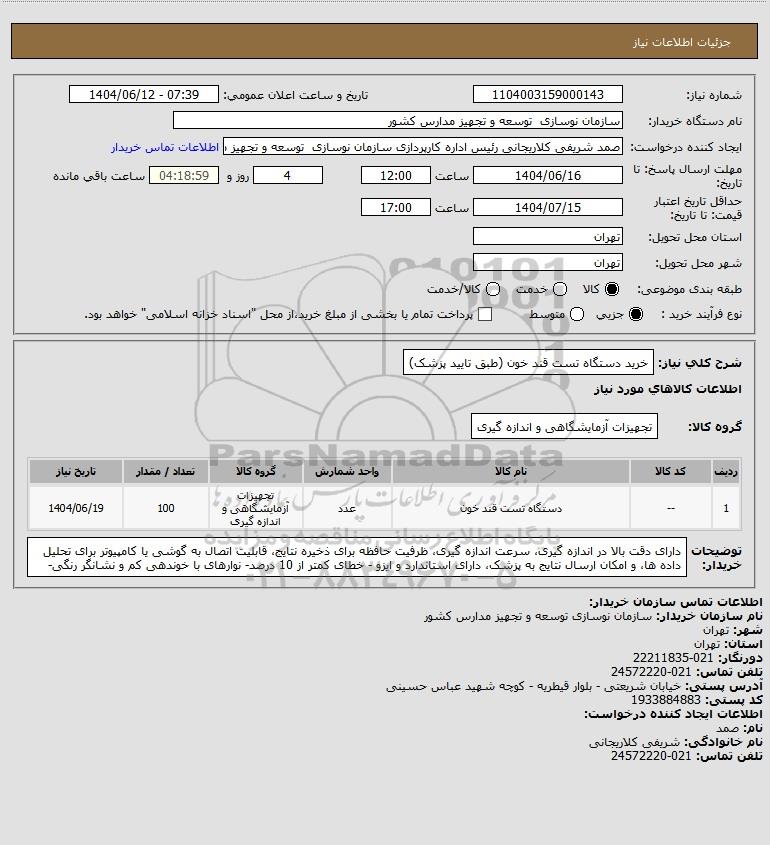 نام دستگاه خریدار:سازمان نوسازی توسعه و تجهیز مدارس کشور