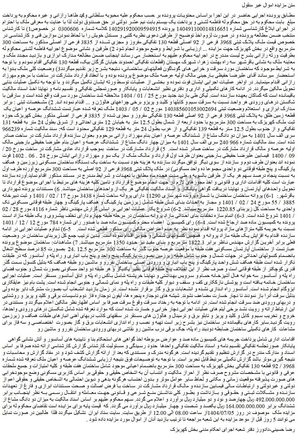 مزایده ملک پلاک ثبتی 3968 فرعی از 92 اصلی قطعه 130 تفکیکی مفروز و مجزی شده از 3835 فرعی از اصلی, مزایده ملک پلاک ثبتی 3968 فرعی از 92 اصلی قطعه 130 تفکیکی مفروز و مجزی شده از 3835 فرعی از اصلی
