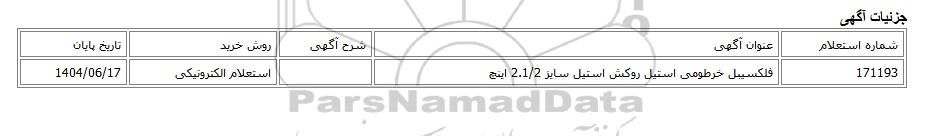 استعلام بها و موضوع استعلام استعلام الکترونیکی، فلکسیبل خرطومی استیل روکش استیل سایز 2.1/2 اینچ به اطلاع کلیه شرکتها و افراد متخصص واجد شرایط میرساند، آگهی گذار در نظر دارد از طریق استعلام بها، نسبت به انتخاب و دریافت پیشنهادات اقدام نماید. این استعلام با کد آگهی ثبت شده در سامانه خبرگزاری پارس نماد : 9492403 منتشر شده است. مشخصات استعلام : تاریخ شروع استعلام: 1404/06/12 آخرین مهلت ارسال پیشنهاد قیمت : 1404/06/17 و محل اجرای پروژه : استان خراسان رضوی میباشد. استعلام قیمت مورد درخواست : استعلام الکترونیکی، فلکسیبل خرطومی استیل روکش استیل سایز 2.1/2 اینچ با دستهبندیهای تخصصی و گروه های مرتبط : ساخت،نصب و تعمیرات صنایع فولاد, قطعات استنلس استیل, لوله و اتصالات, تجهیزات و ماشین آلات صنعتی, استعلام اطلاع رسانی میگردد.