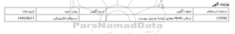 170760شافت Mo40 مطابق نقشه ودیتیل پیوستاستعلام الکترونیکی1404/06/17