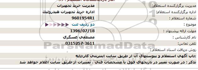 اداره برگزارکننده استعلام: اداره خرید تجهیزات هیدرولیک